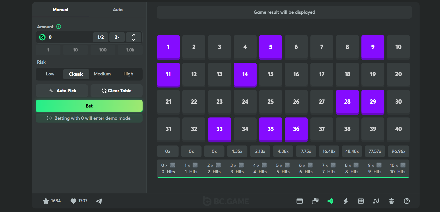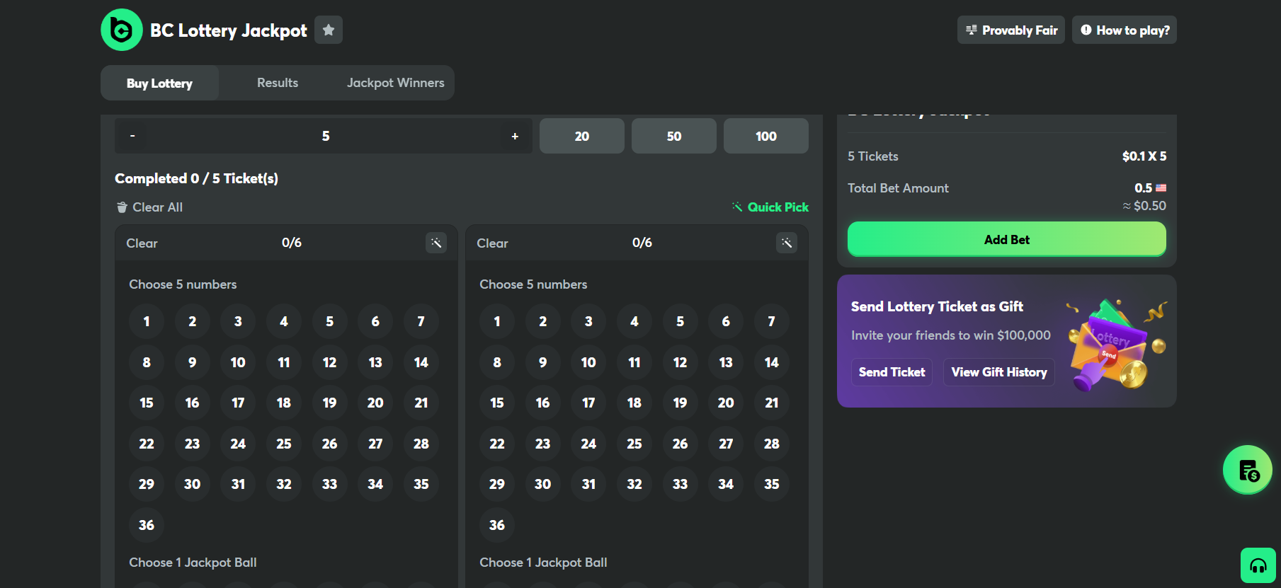 Loterija BC.Game ir klasisks formāts digitālā vidē. Izvēlies skaitļus, piedalies izlozē un gaidi rezultātus. Pieejamas gan vietēja tipa, gan starptautiskas izlozes, ar mazākiem regulāriem laimestiem vai iespaidīgiem džekpotiem.