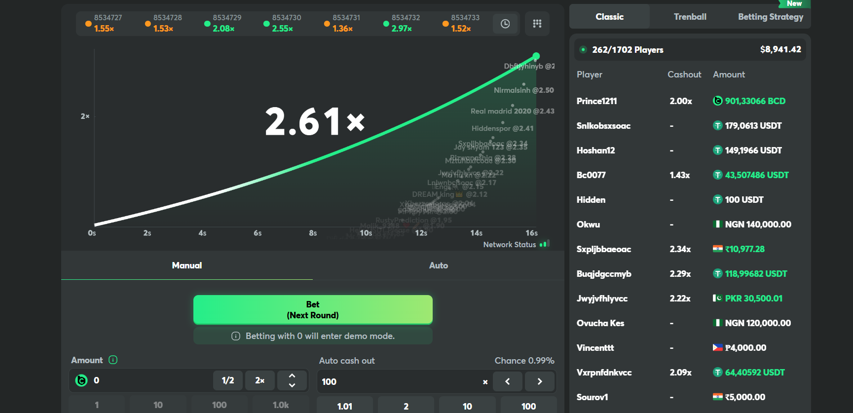 Crash liek sēdēt uz adrenalīna malas. Likme tiek likta, reizinātājs aug, un tev jāizlemj, kad izņemt. Ja pagaidi par ilgu — viss pazūd, bet ja laiks ir precīzs, tu iegūsti lielisku laimestu.