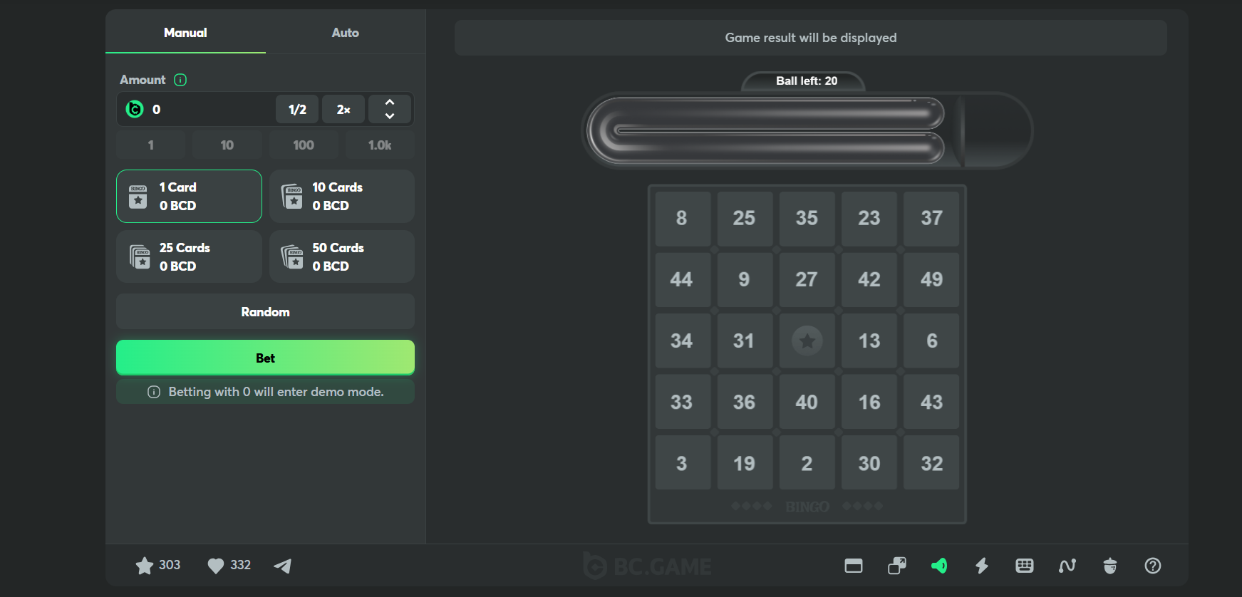 Bingo BC.Game platformā piedāvā gan tradicionālos 75 vai 90 bumbu formātus, gan papildu iespējas: ikdienas turnīrus, progresīvos džekpotus un mini-spēles.