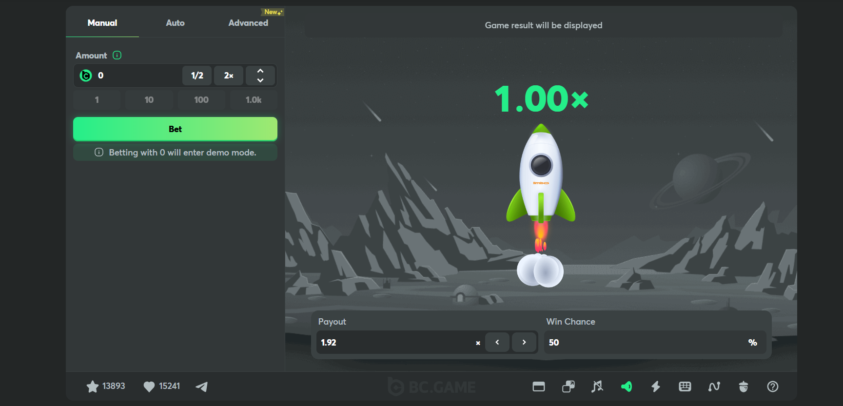 Limbo ir viena no ikoniskākajām BC.Game oriģinālajām spēlēm. Noteikumi ir vienkārši: izvēlies mērķa reizinātāju, liec likmi un skaties, vai rezultāts to pārsniedz.