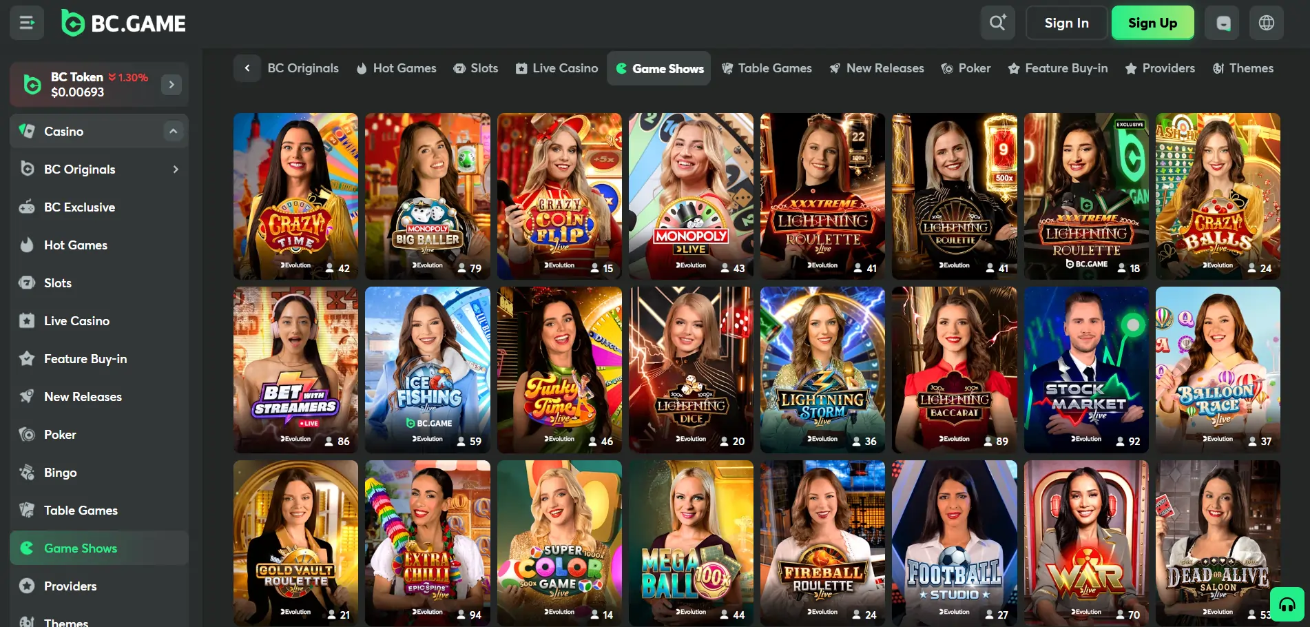 Tiešraides spēļu šovi BC.Game platformā savieno kazino un izklaidi. “Crazy Time”, “Deal or No Deal” un “Dream Catcher” ļauj justies kā TV spēlē ar reāliem vadītājiem.