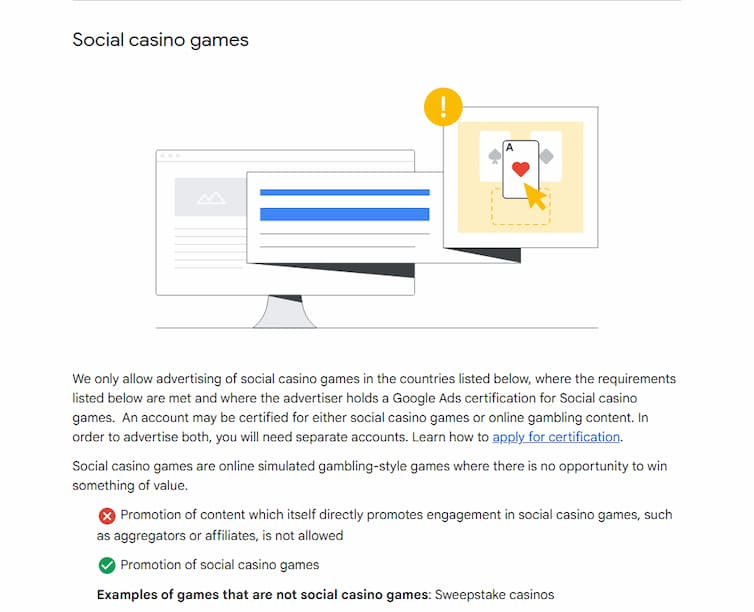 Gadu gaitā šādas vietnes izmantoja šo formulējumu, lai apietu Google reklāmas noteikumus. Daudzi uzņēmumi reklamēja savas spēles kā drošas “sociālās kazino spēles”, pat ja spēlētāji tajās varēja laimēt īstu naudu. Tagad tas vairs nebūs iespējams — šie uzņēmumi nevarēs savas reklāmas ievietot šajā kategorijā.