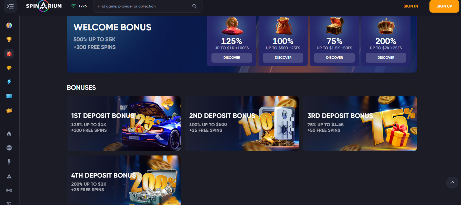 Labākā daļa ikvienā tiešsaistes kazino (daudziem spēlētājiem) ir piekļuve dāsniem bonusiem un akcijām. Spinarium šajā ziņā neliek vilties – un mēs pastāstīsim vairāk.