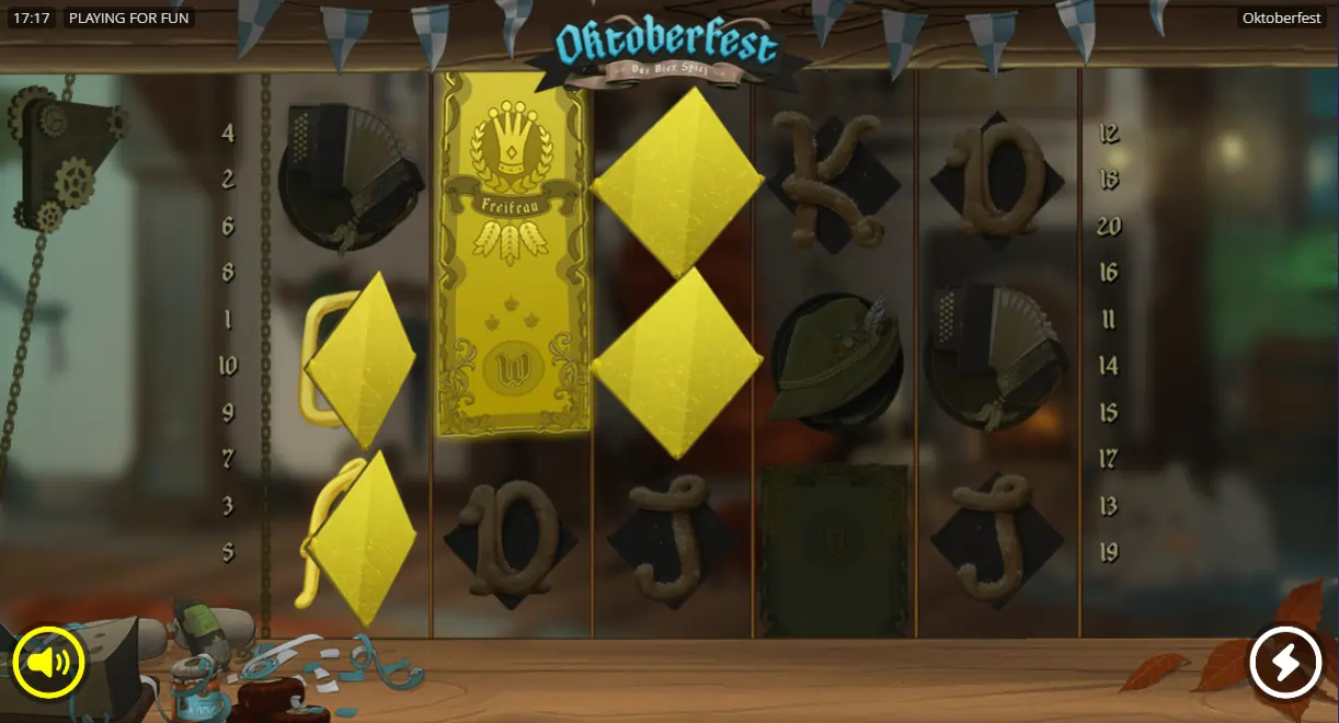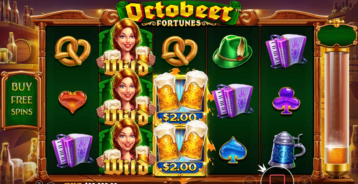 Spēle “Oktoberfest” iemieso slavenā alus svētku garu ar bagātīgu vizuālo noformējumu un aizraujošām iespējām. Tā apvieno reizinātājus un svinīgu atmosfēru, padarot katru griezienu par īstu piedzīvojumu.