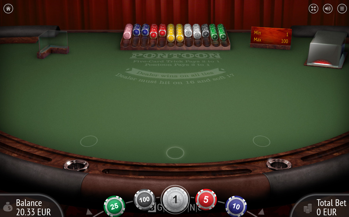 Pirms spēlēt Pontoon, pārliecinieties, ka esat iepazinušies ar konkrētās zāles noteikumiem, un vismaz sākumā nespēlēiet ar lielām naudas summām un vispirms izmēģiniet spēli.